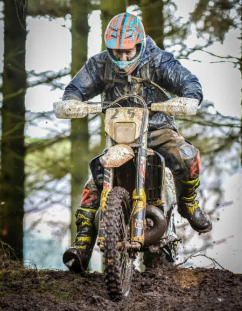 WOR EVENTS WULFSPORT WINTER HARE SCRAMBLES RD 1 SOLO RACE: “Roy’s the Boy!” A very wet and wintery Llandrillo forest greeted the riders at WOR Events latest production, The 1st round of the club’s Wulfsport Winter series 2107/2018. This proper forest Enduro venue can run in 99% bad weather and always offers a superb challenge and ride out for the riders and this event’s 6.5-mile lap was no different with a superb mix of fire roads, trails, rocky lanes and some slop in the trees. A very healthy turn out of both solos and quads took to the start line (separate races) and battled the elements superbly.