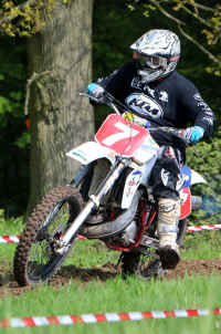 The majestic Shuckburgh Hall played host to the third visit of the year by Cotswold Enduro Club last Sunday. Round three of the Rock Oil Hare & Hounds Championship, and third round of the Club Championships, enjoyed dry and bright conditions although riders saw precious little of the sun when they were immersed in one of the estates many stands of woodland. According to organiser Pete Carter, the layout was a relatively short run of three and a half miles but it seemed far longer to the riders. Much of the course was easily negotiated with choices of lines everywhere but a few sections were more technical and proved testing to some competitors. Dry going virtually everywhere with the odd sticky spots scattered around the loop made for easy going until the track polished up on a few corners, catching out many unwary riders. Pro Championship rider Matt Porter made a headlong dash to the front as the start flag dropped and by the end of the first lap he had a considerable lead which allowed him to ride without pressure for the whole of the 3-hour race, eventually finishing a lap up on everyone as the chequered flag was waved. Jeremy Callow had a terrific ride to take second spot, fending off a strong challenge from third placed Ben Adams and pulling a growing gap as the race neared its conclusion.